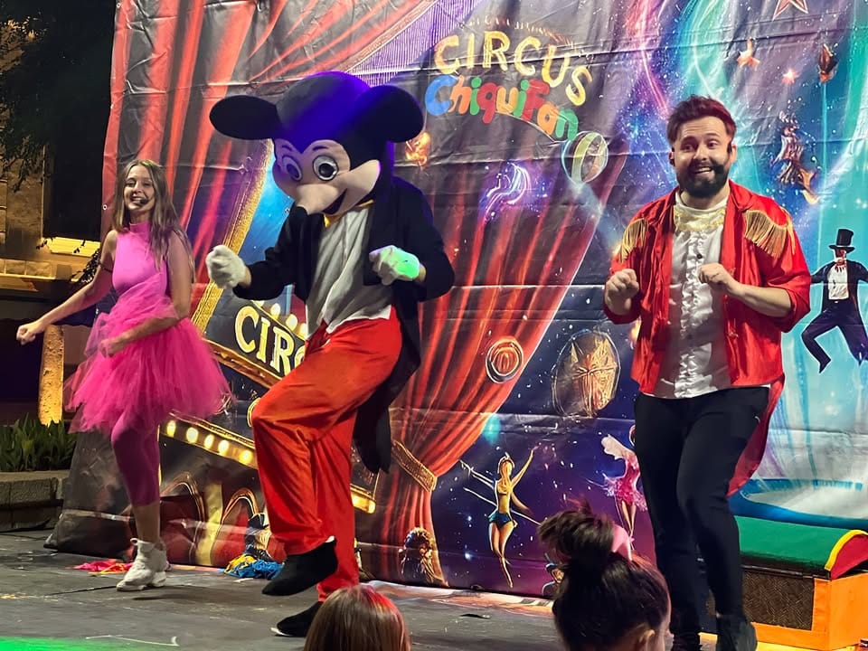 Al caer la noche, la Plaza Mayor se transformó en un escenario festivo para los jóvenes. Allí, acompañados de Chiquifan, los niños cantaron y bailaron al ritmo de sus canciones infantiles favoritas, creando un ambiente lleno de risas y alegría junto a amigos y familiares.