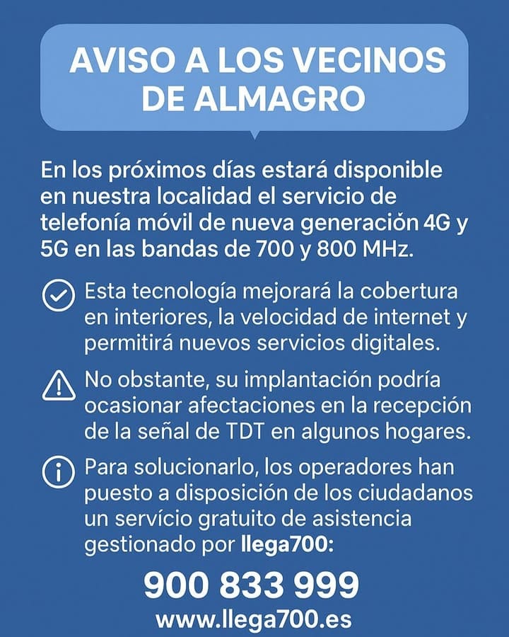 Aviso para los vecinos de Almagro: mejoras en el servicio móvil 4G y 5G