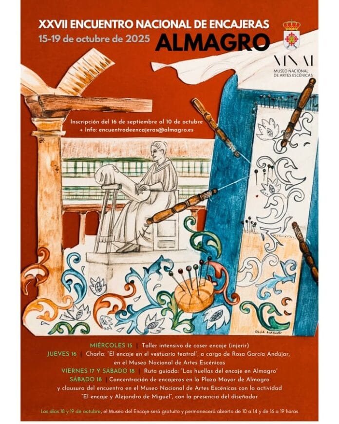 El plazo de inscripción para el Encuentro Nacional de Encajeras comienza mañana, 16 de septiembre. Este evento, en su vigésimo séptima edición, está organizado por la Concejalía de Cultura de Almagro y se perfila como una celebración del arte y la tradición del encaje.