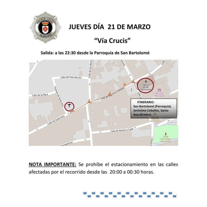 Se ruega estar atentos al cambio constante de señalización circunstancial, debido al gran volumen de Vía Crucis, traslados y procesiones que tenemos en Almagro.