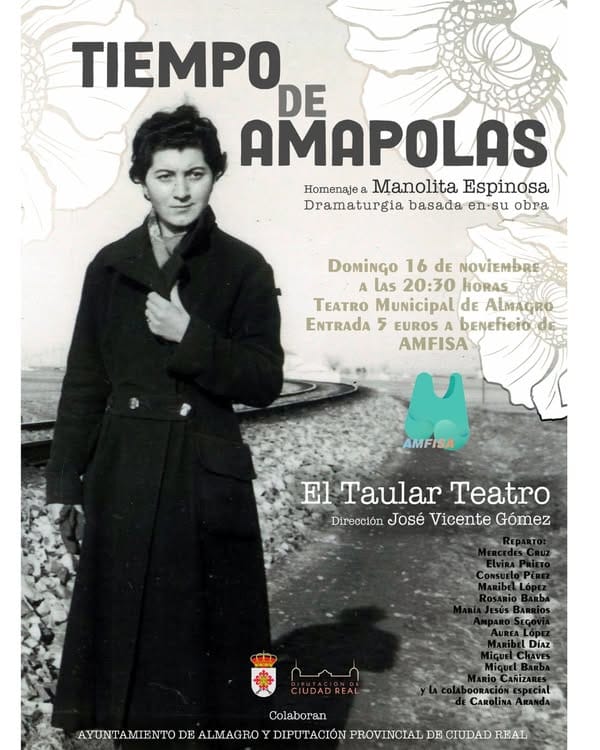 El aclamado montaje «Tiempo de Amapolas», que rinde homenaje a la vida y poesía de la querida Manolita Espinosa, vuelve al escenario del Teatro Municipal de Almagro. Esta obra recibió una gran acogida en la XXXIX Semana de la Poesía Española en Almagro, capturando los corazones de los asistentes con su emotiva representación.